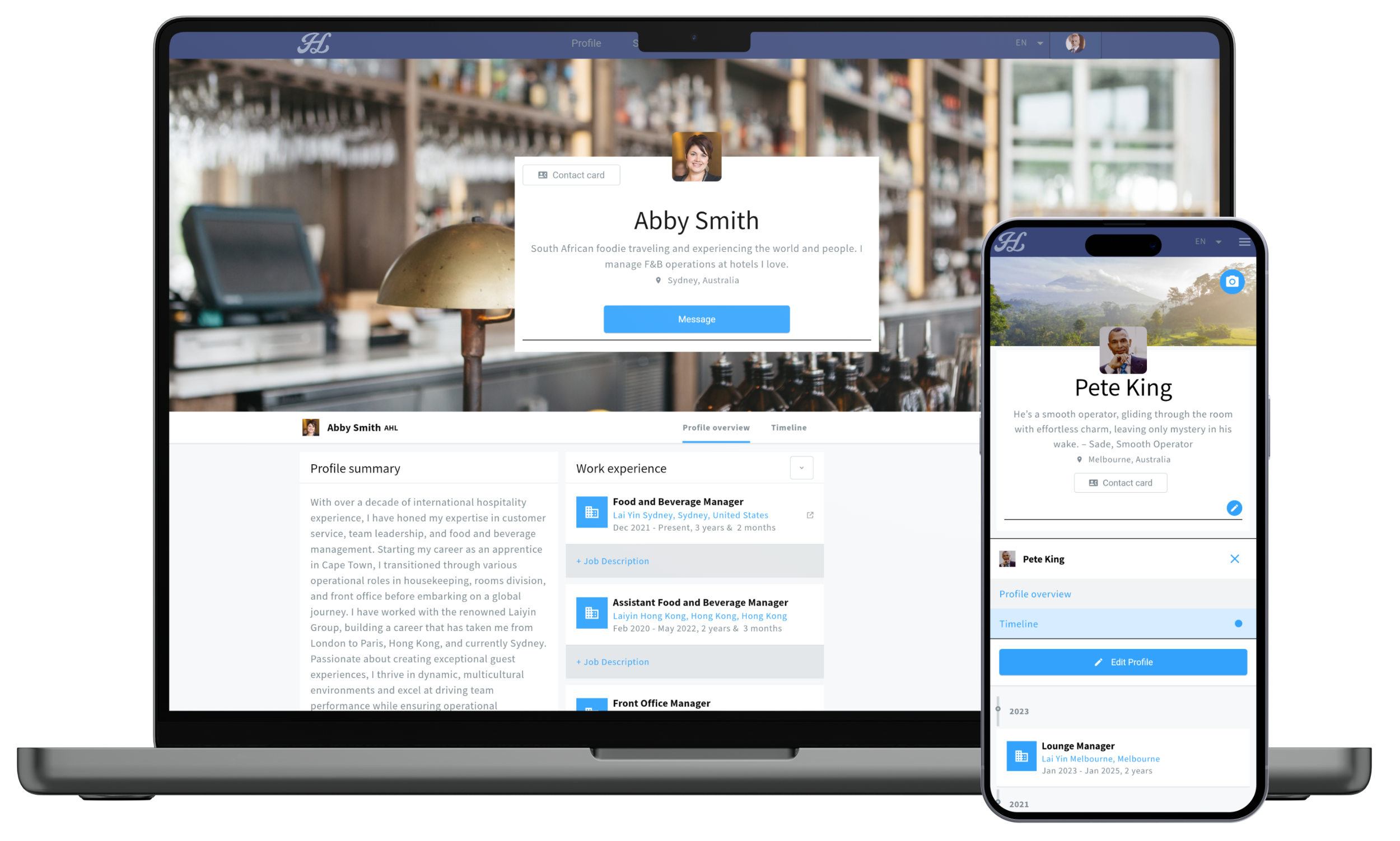 One profile serves each person across roles and companies.